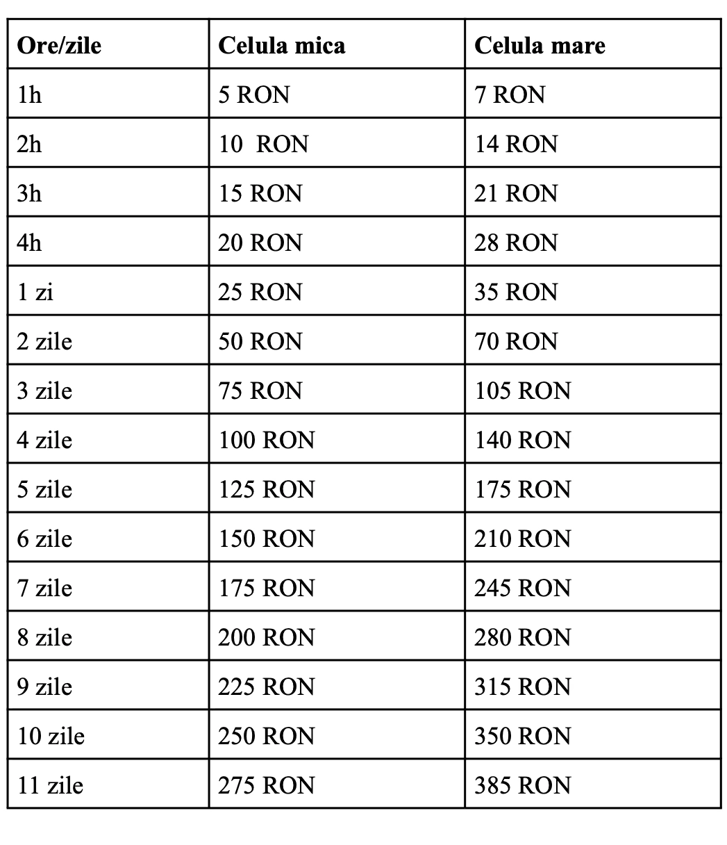Pe durata unei perioade plătite, Clientul poate deschide celula ori de câte ori dorește în intervalul preplătit și doar dacă nu a ales să renunțe la rezervare (în momentul în care a fost întrebat la deschiderea celulei; la fiecare deschidere a celulei, Clientul este întrebat dacă continuă rezervarea sau renunță la rezervare). După expirarea duratei de rezervare plătite, deschiderea celulei este posibilă doar după plata aferentă pentru intervalul de timp depășit, conform intervalelor și prețurilor aferente.