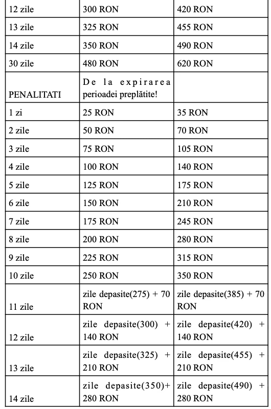 Perioadele de depozitare posibile precum și prețurile aferente acestora puse la dispoziția Clientului de către LIVIAN INVEST DEPARTMENT S.R.L. sunt următoarele: